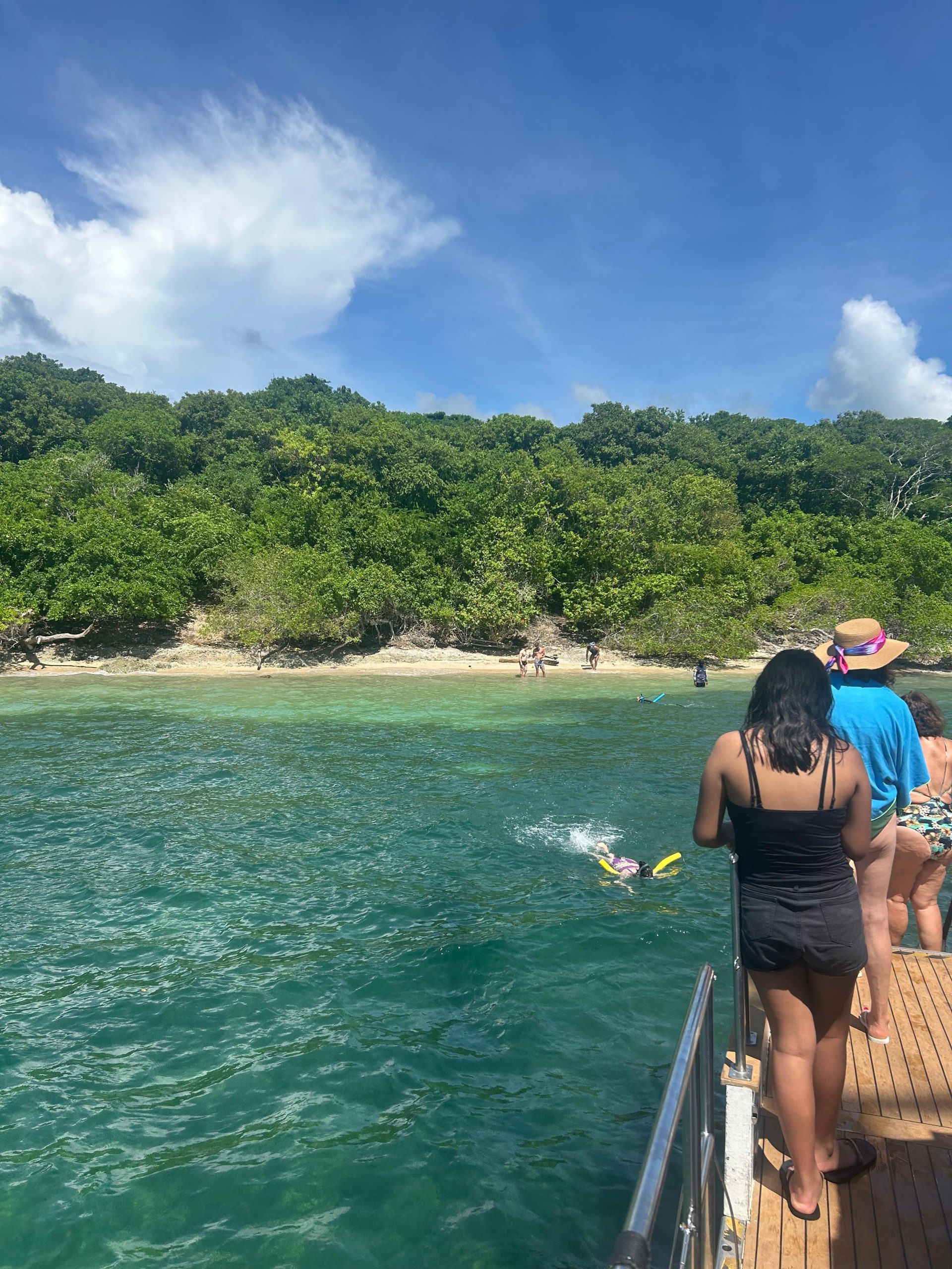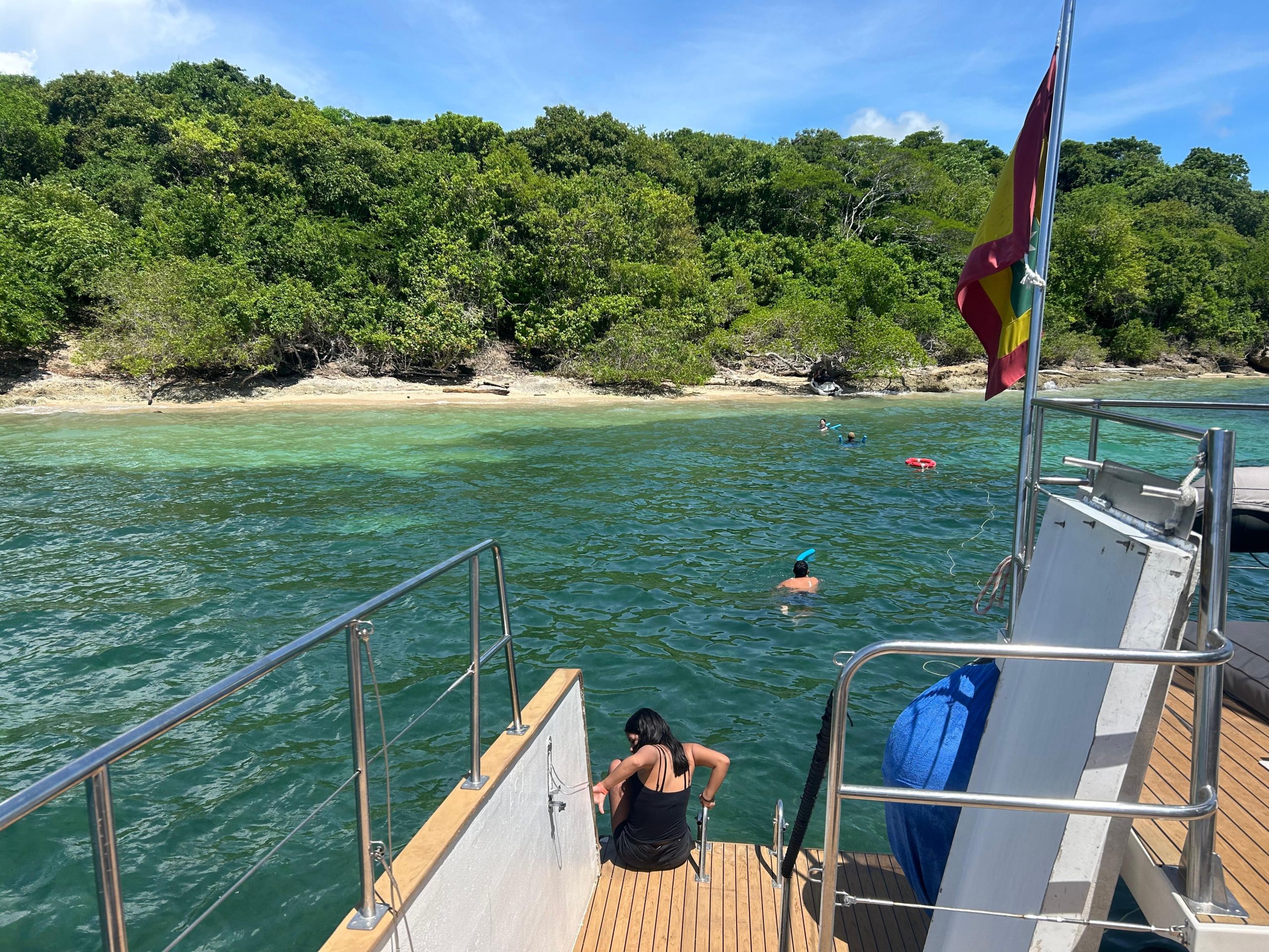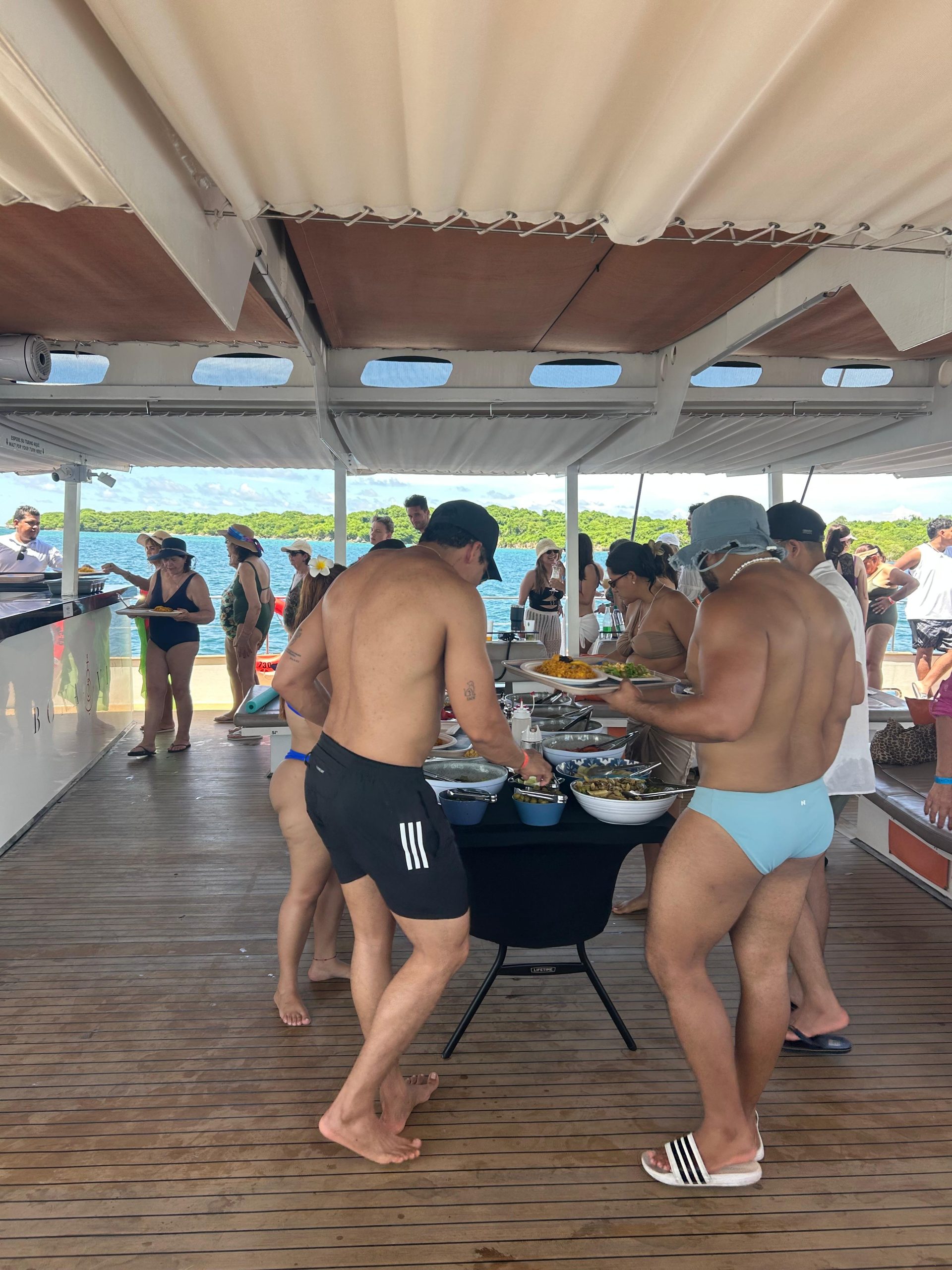 ITINERARIO: zarpamos a la 8:30 a.m. rumbo Isla Grande, la navegación es muy tranquila y pueden aprovechar este espacio para asolearse, tomar cocteles, recibir el snack de media mañana y apreciar una vista panorámica de la isla Bocachica y Barú, así mismo de las islas que van apareciendo a nuestra entrada al parque Natural Nacional Corales del Rosario, al llegar a esta zona que también recibe el nombre de Caribarú, nuestro capitán fondea la embarcación haciendo amarre a una de las boyas que se encuentran en esta zona, y damos inicio al primer tiempo en la excursión para que los pasajeros disfruten del mar al que pueden hacer ingreso utilizando nuestras escaleras en popa o nuestra escalera principal en proa, los más intrépidos pueden lanzarse desde los costados de nuestra embarcación, en este punto ofrecemos chalecos salvavidas, flotis, máscaras y tubos para quienes deseen hacer snorkeling (sólo tendría que dejar un documento a nuestros marineros para reclamar el equipo y se le regresa en el momento en que haga la devolución de la máscara y el tubo), luego de la hora y media en este punto, zarpamos nuevamente hacia Barú, a una zona llamada Punta Gigante o Porto Naito, en este segundo lugar nos anclamos por otra hora y media / dos horas para que las personas puedan seguir disfrutando del mar y de una playa virgen que se encuentra muy cerca de la embarcación (para llegar hasta la orilla los pasajeros deben nadar), en este punto servimos el almuerzo que puede ser arroz con mariscos o arroz con vegetales, a las 2:40 pm aproximadamente iniciamos nuestro regreso al Muelle de la Bodeguita para realizar el desembarque a las 4:00 p.m.